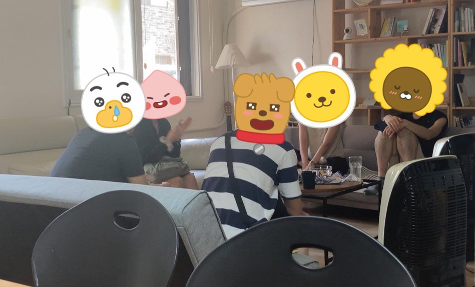 폭염에도 두더집 2층에서는 00, ㅎㅎ, ㄱㄱ, ㅋㅋ, ㅈㅈ, ㅁㅁ 등이 대화모임중.
