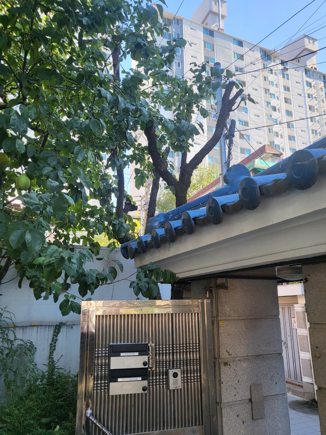 앞마당의 감나무에 가지가 많고 열매가 바닥에 떨어지는 상황이 생겨서