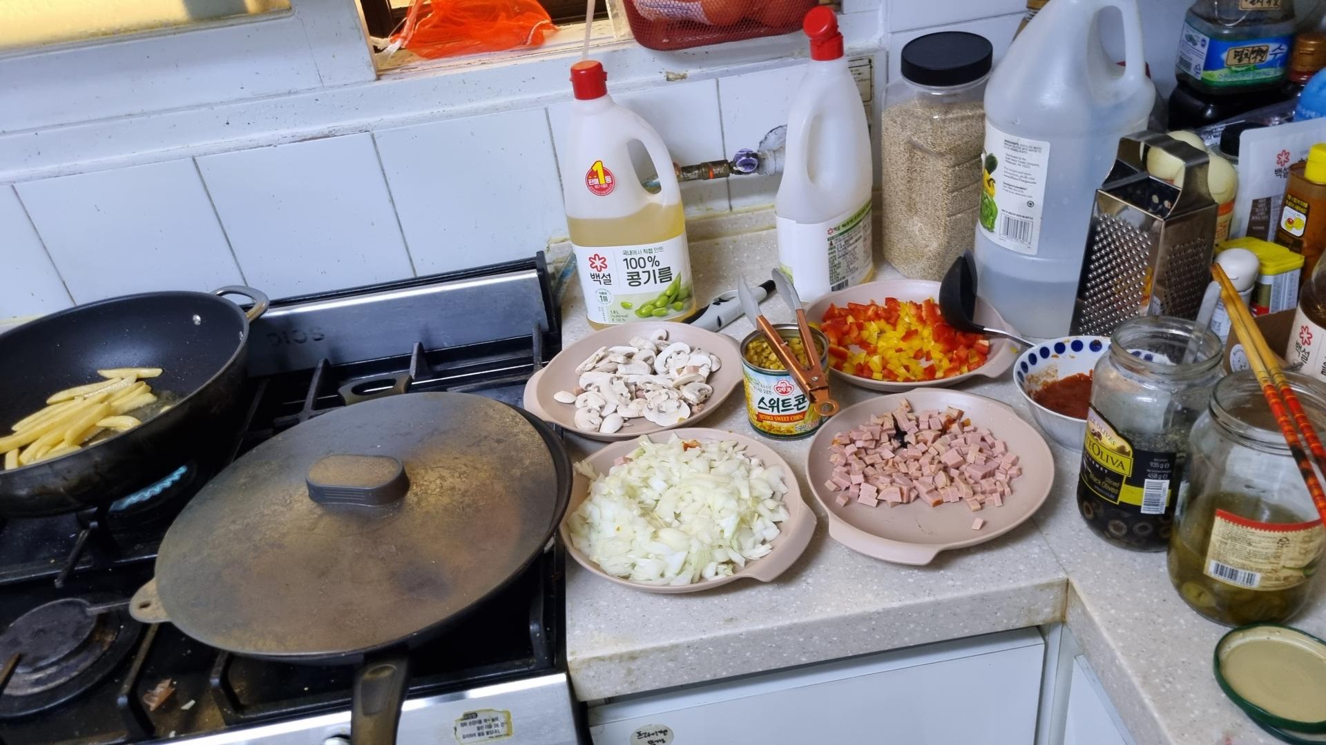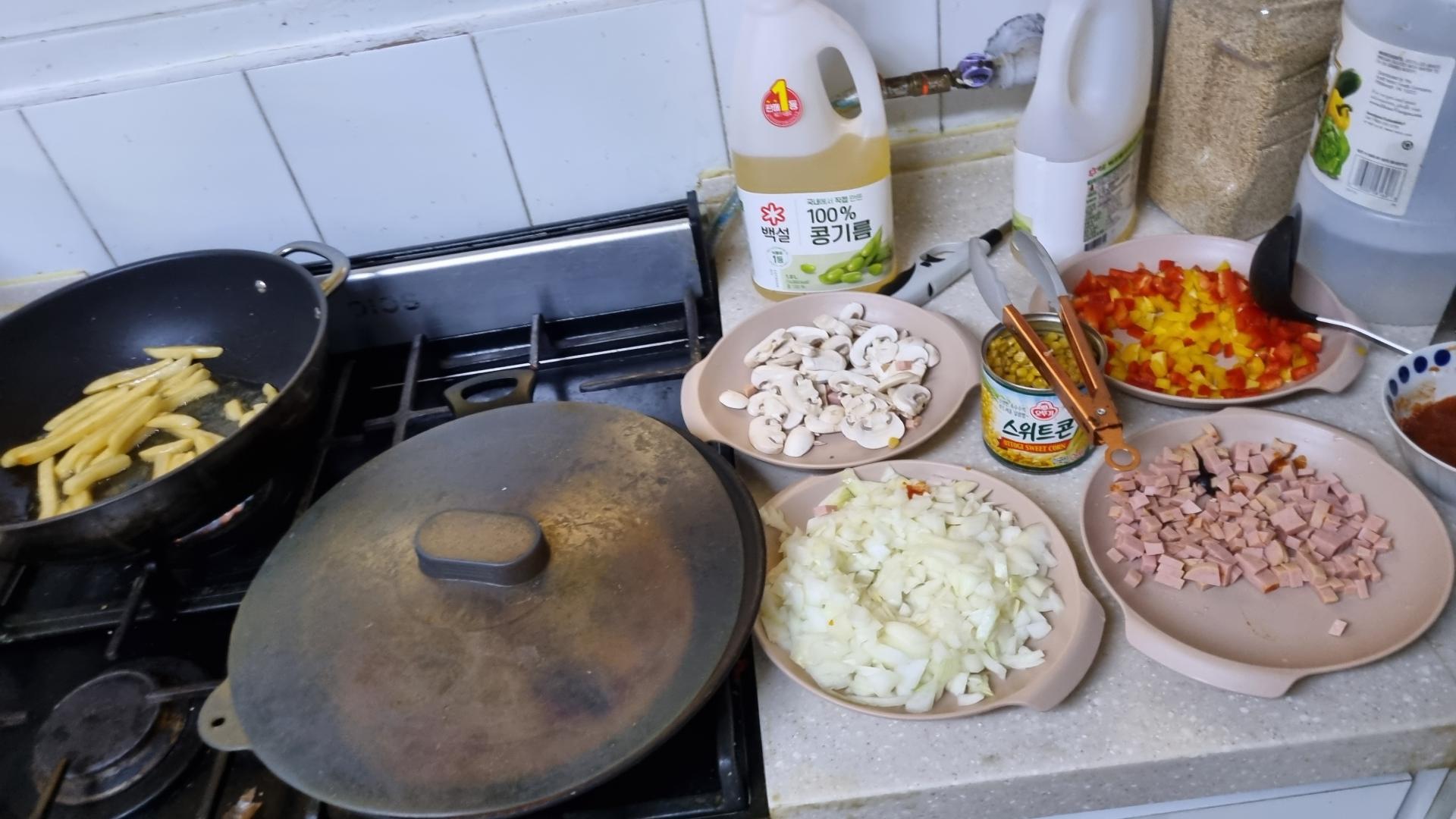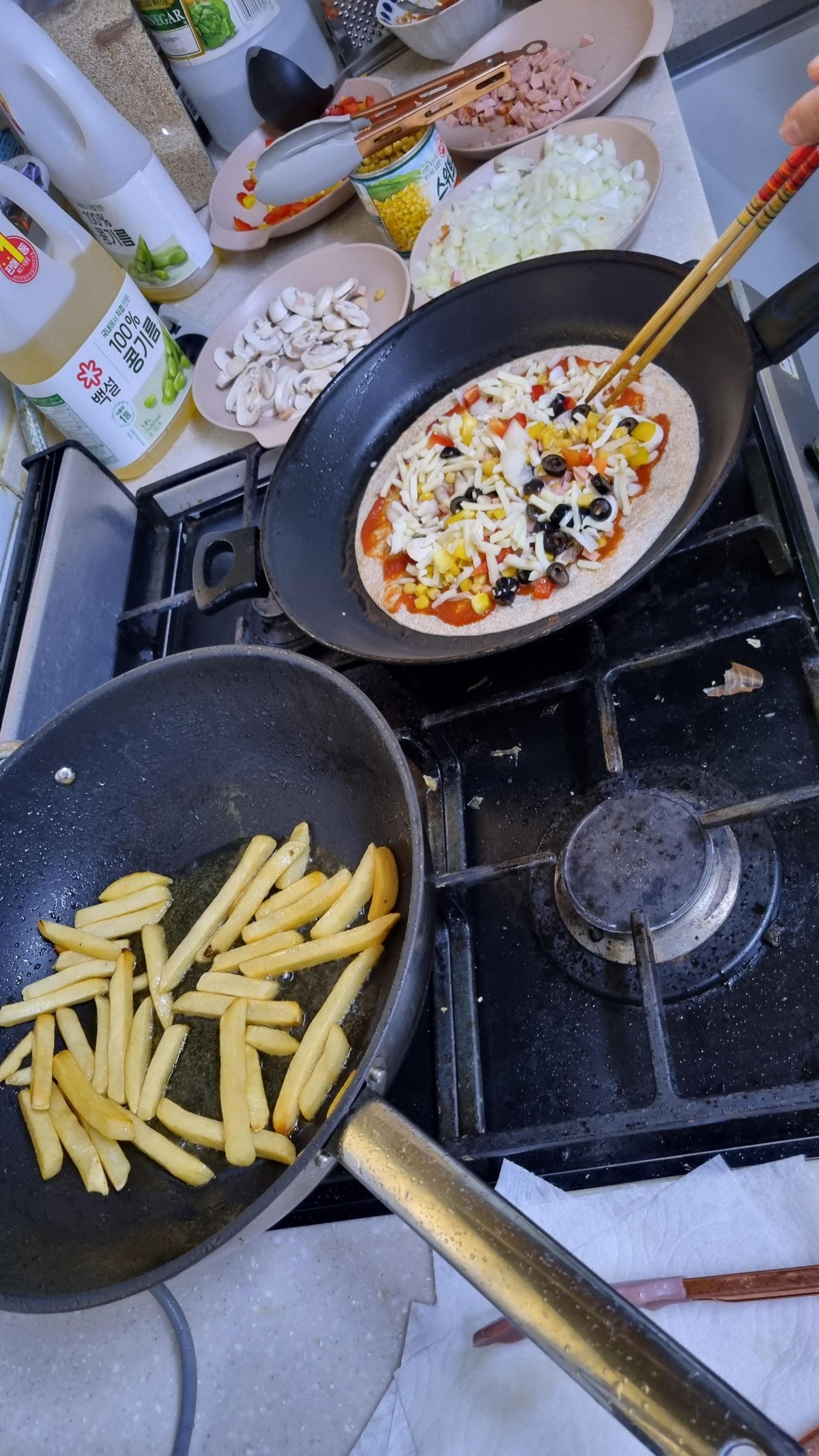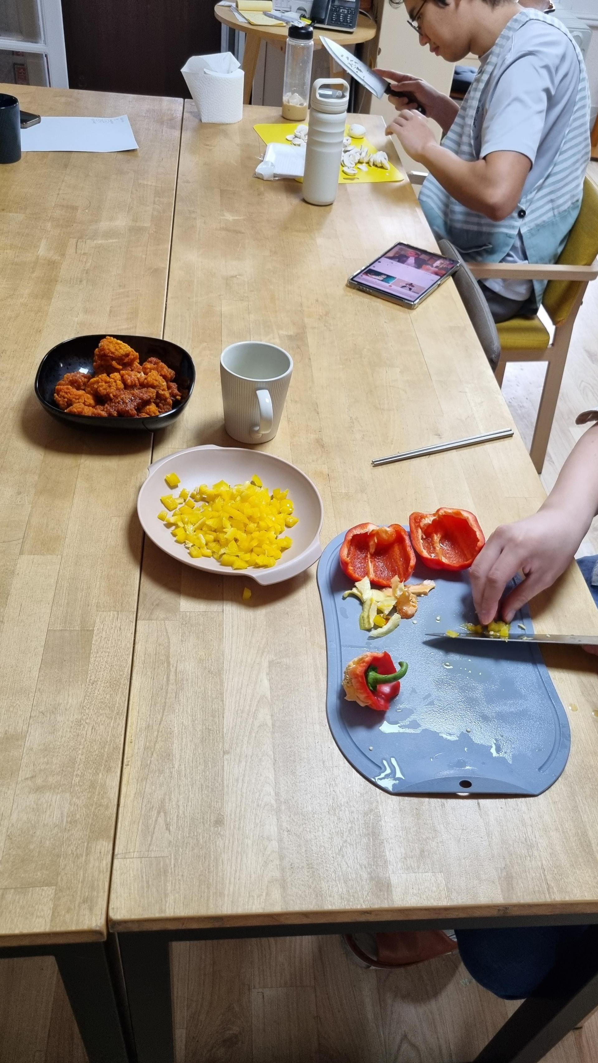 다같이 앉아서 먹지 못하고 하나씩 완성되서 먹었다.