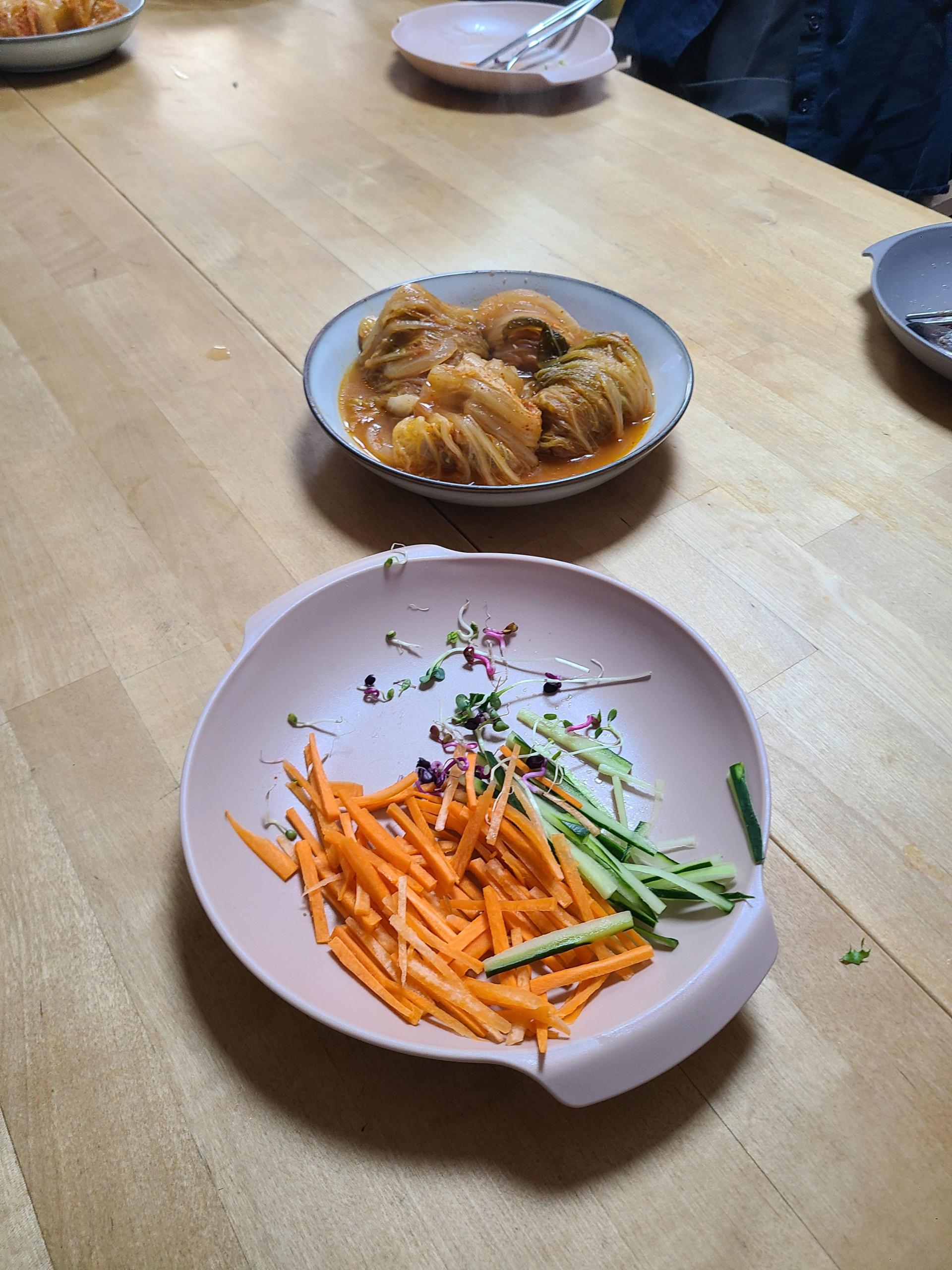 메뉴는 샐러드 안심 평채, 돼지고기 김치찜 등의 요리를 만들어 주셨습니다.