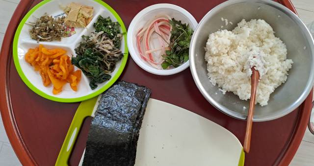귤칩 만들고, 텃밭에서 재배한 바질 등 넣어 김밥만들어 집밥나눔했어요
