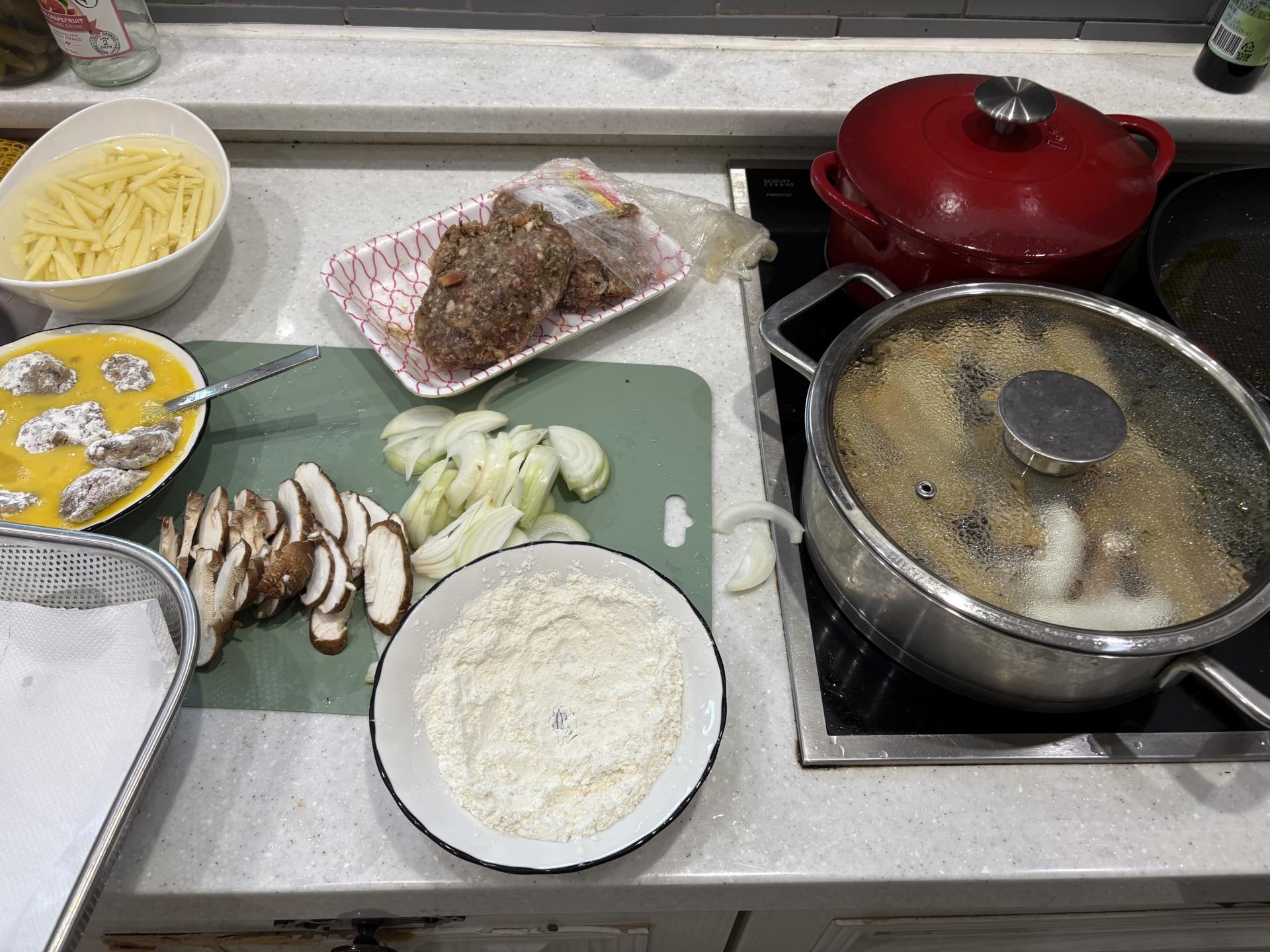 무를 심고 나서 동그랑땡, 어묵탕, 감자채 볶음을 먹으며 집밥 모임을 했습니다.