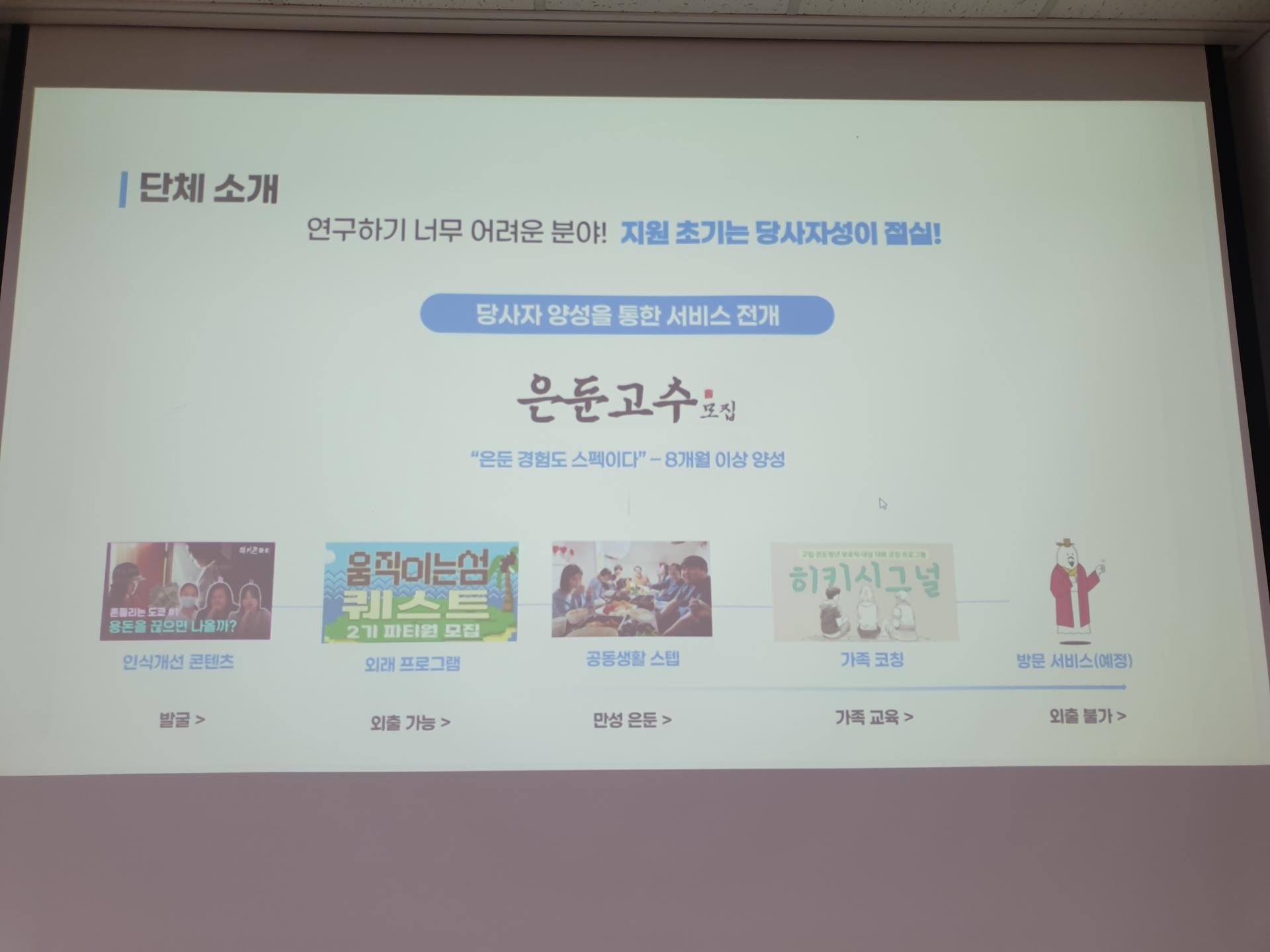 이사장님께서 안무서운회사로 가기전에 서울시의 은둔고립에 관한 간단한 설명을 해주셨다.