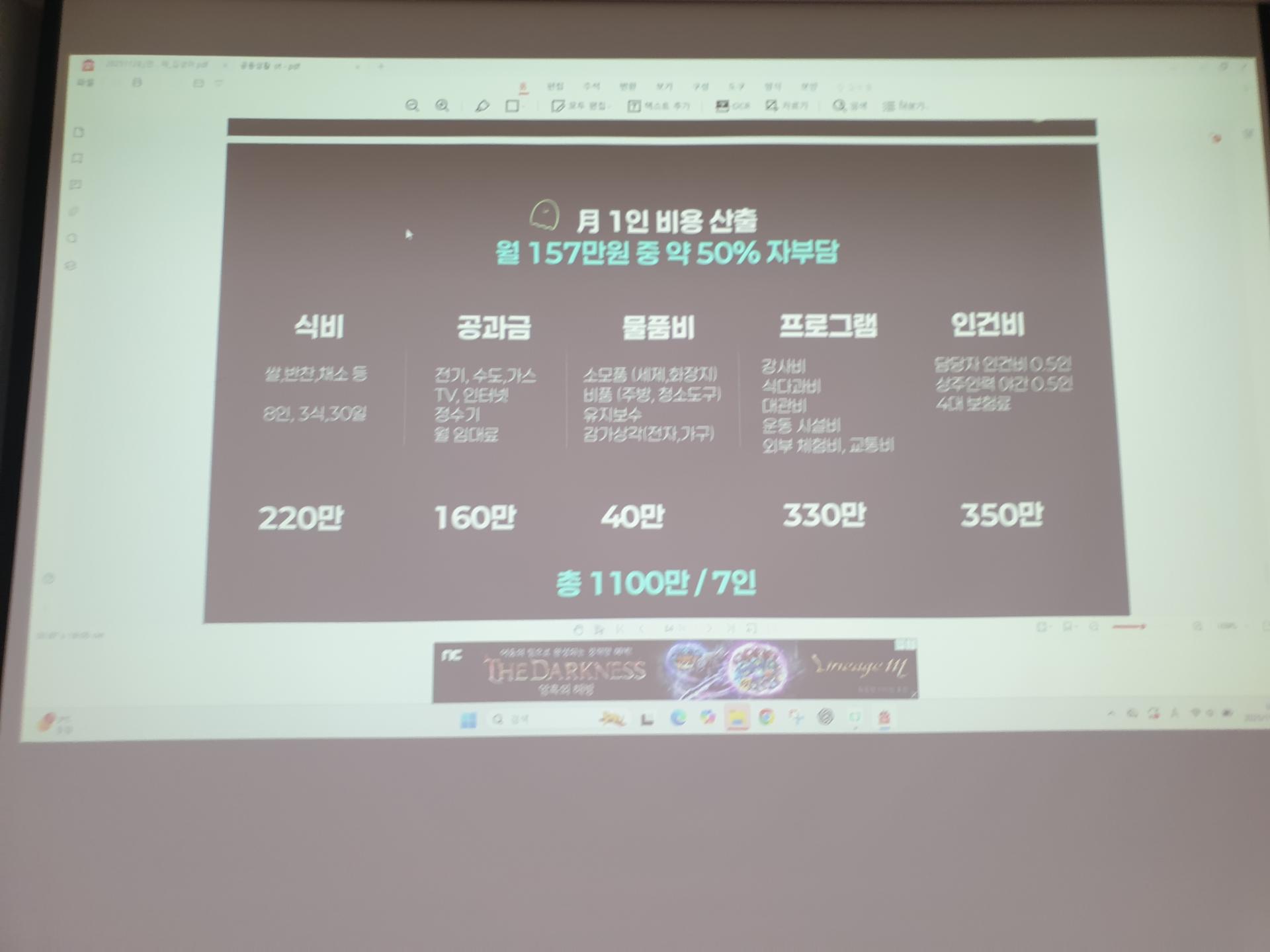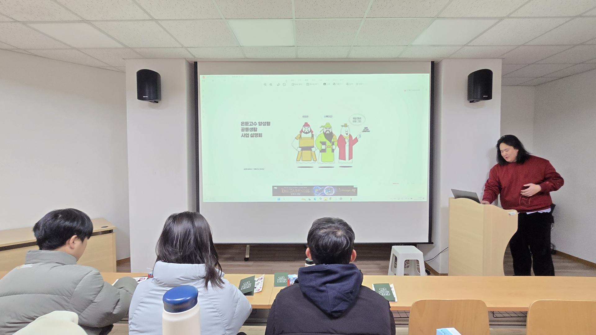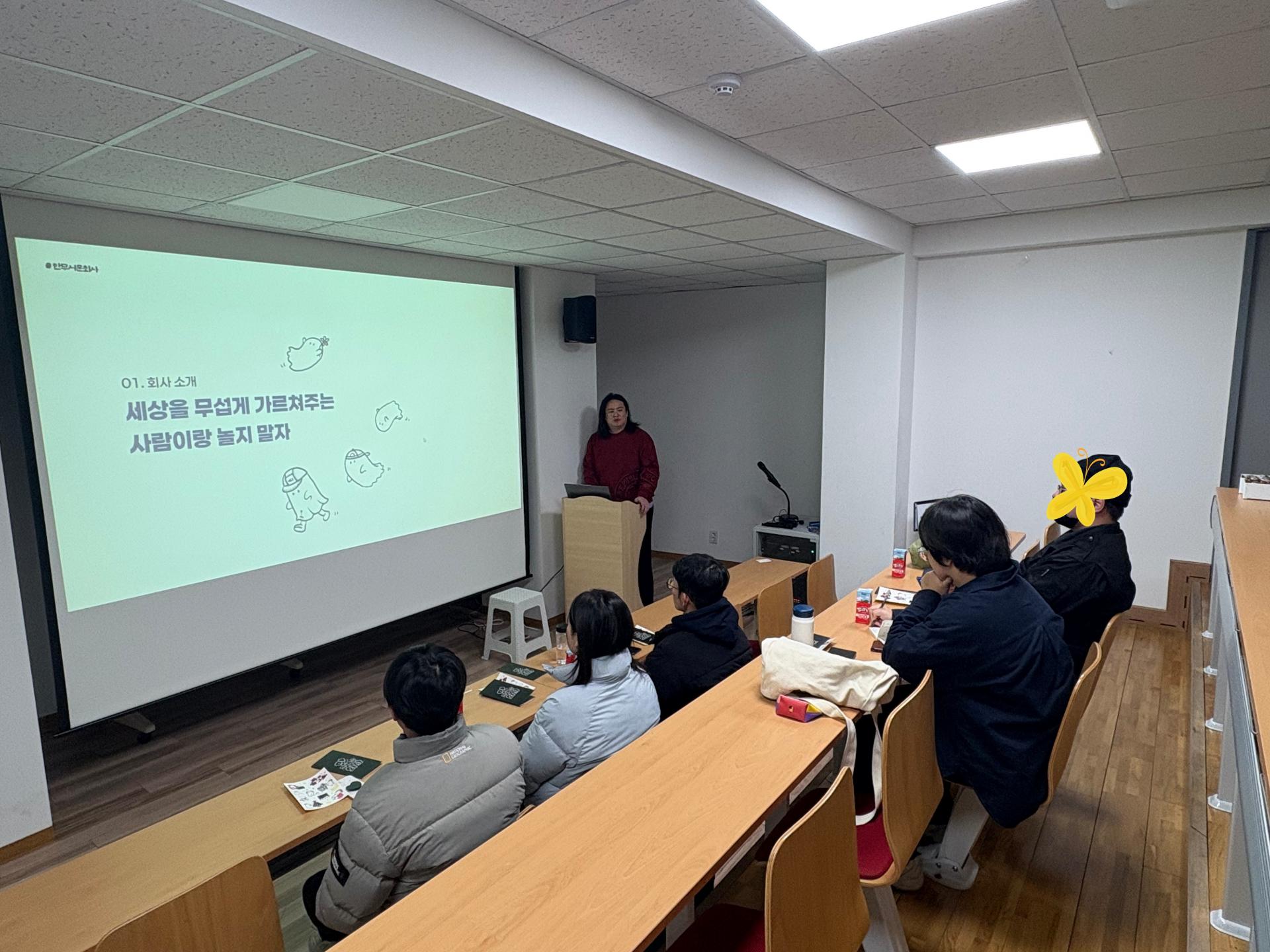 경제지원센터의 공간에서 안무서운회사에 대해서 간단한 소개를 들을 수 있었다.