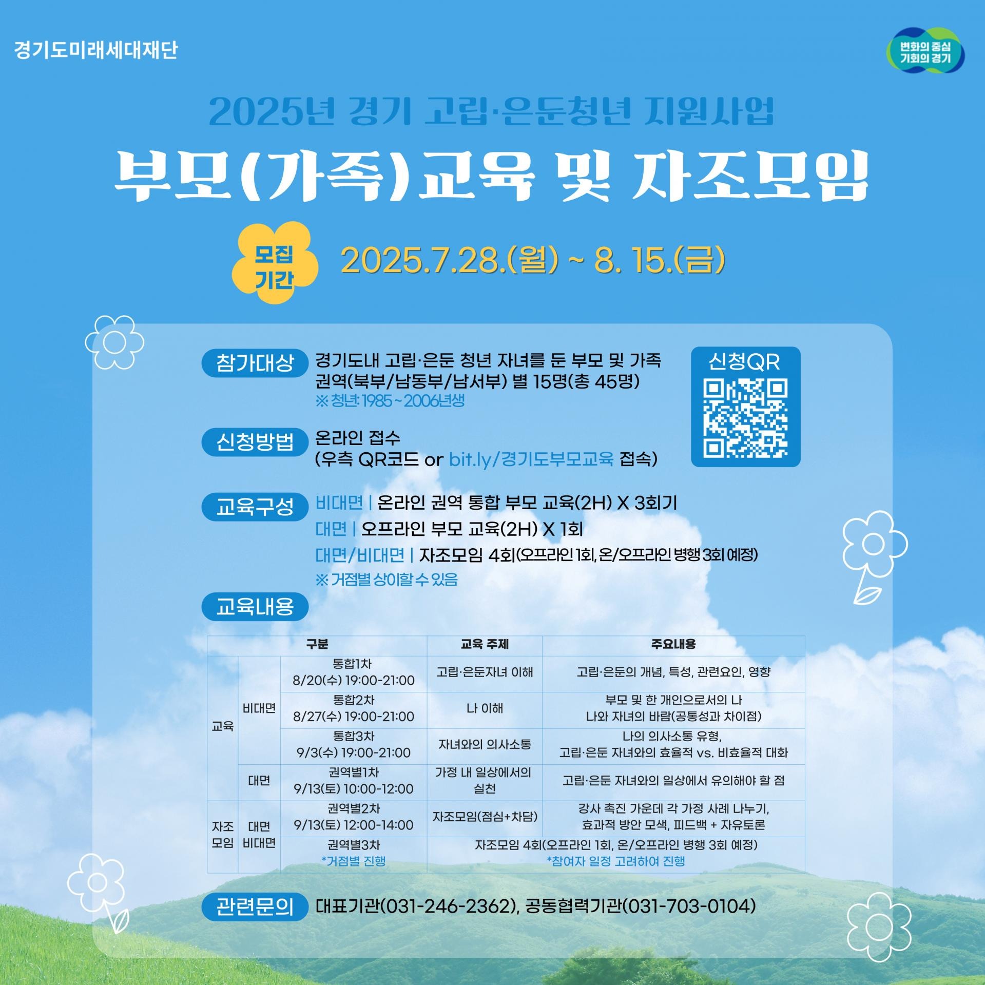 관련문의 대표기관(031-246-2362), 공동협력기관(031-703-0104)