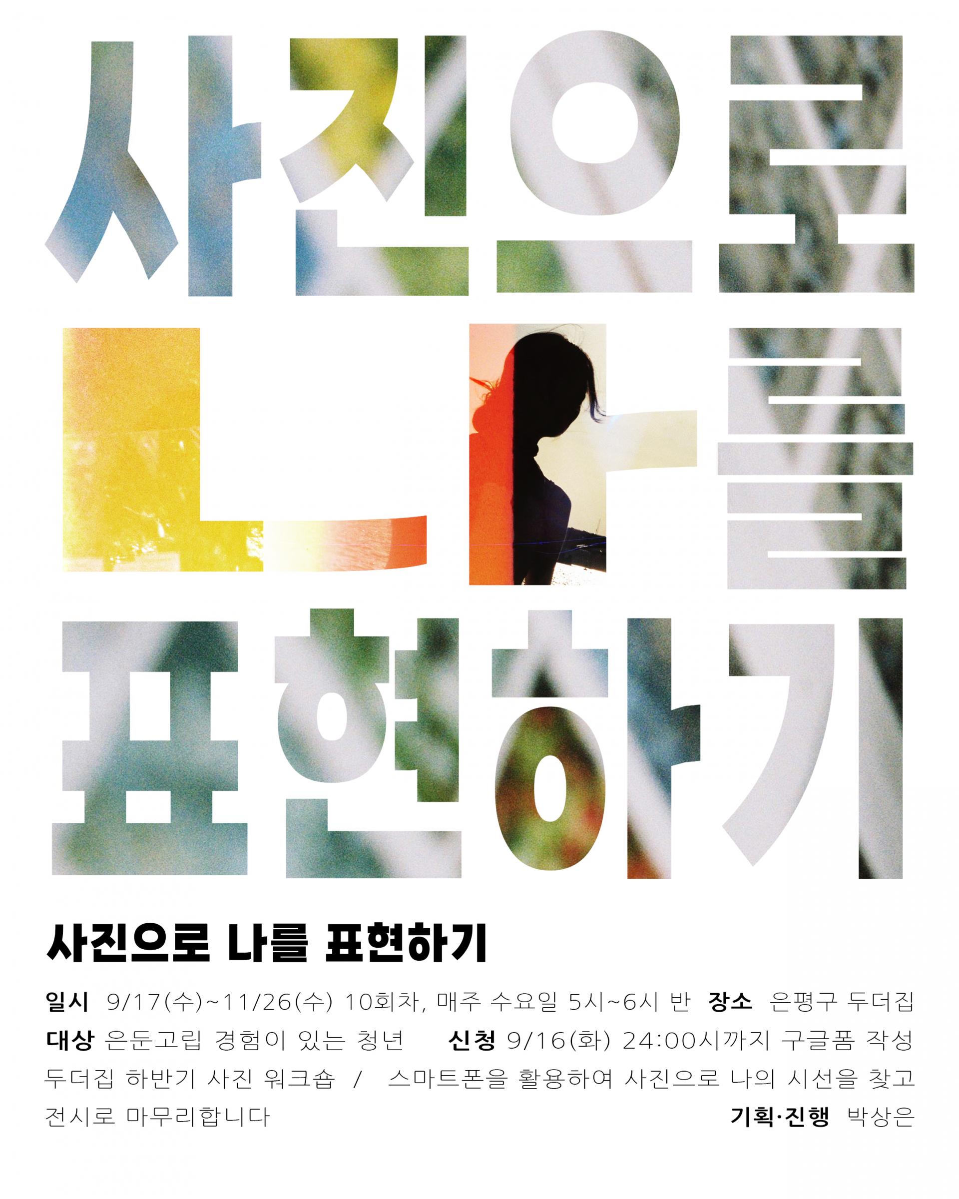 상반기 워크숍 <시야 넓히기, 나를 만나기>에 이어 사진의 특징을 배우고 그것을 나를 표현하는 사진 워크숍입니다.