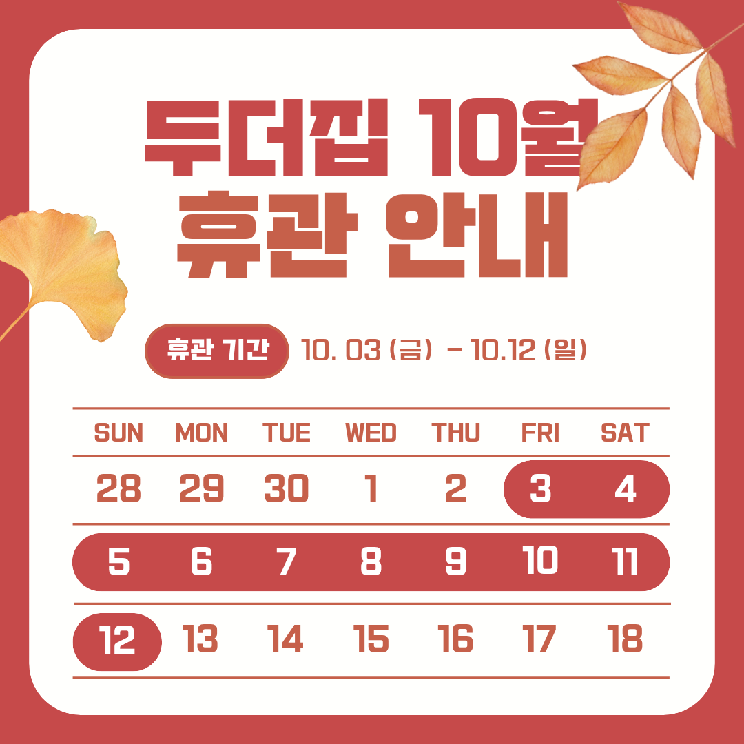 이번 한가위 장기 연휴를 맞아 서울 두더집도 휴관하게 됨을 알려드립니다.