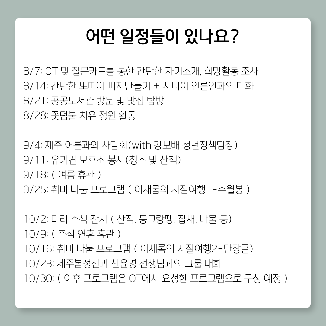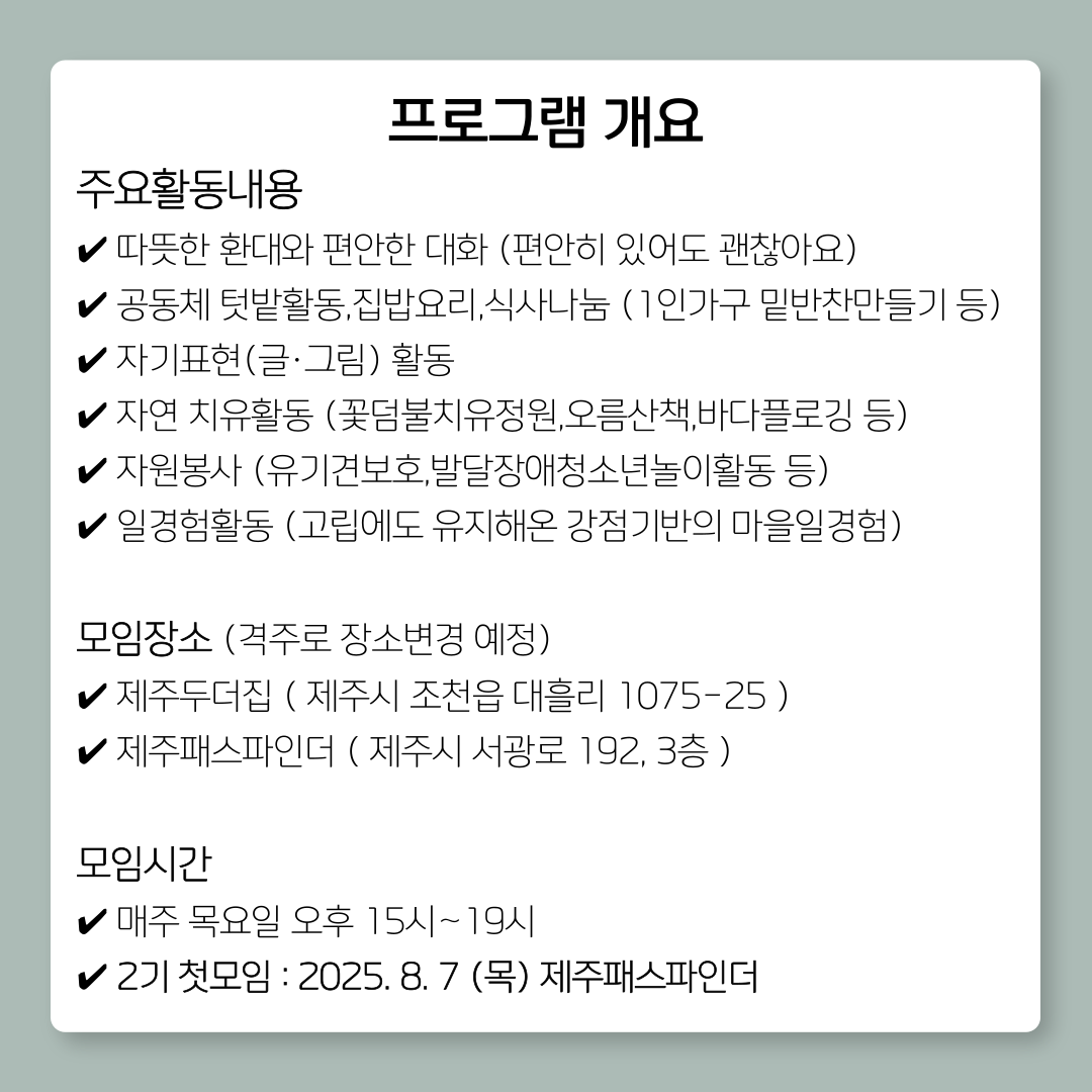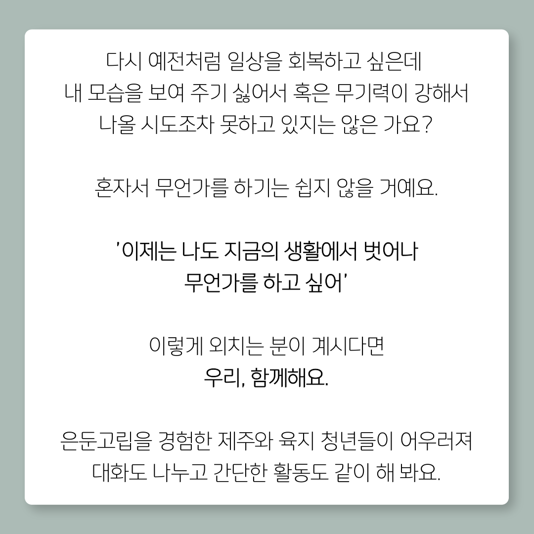 제주 은둔고립 청년들의 서로돌봄서클 운영합니다.