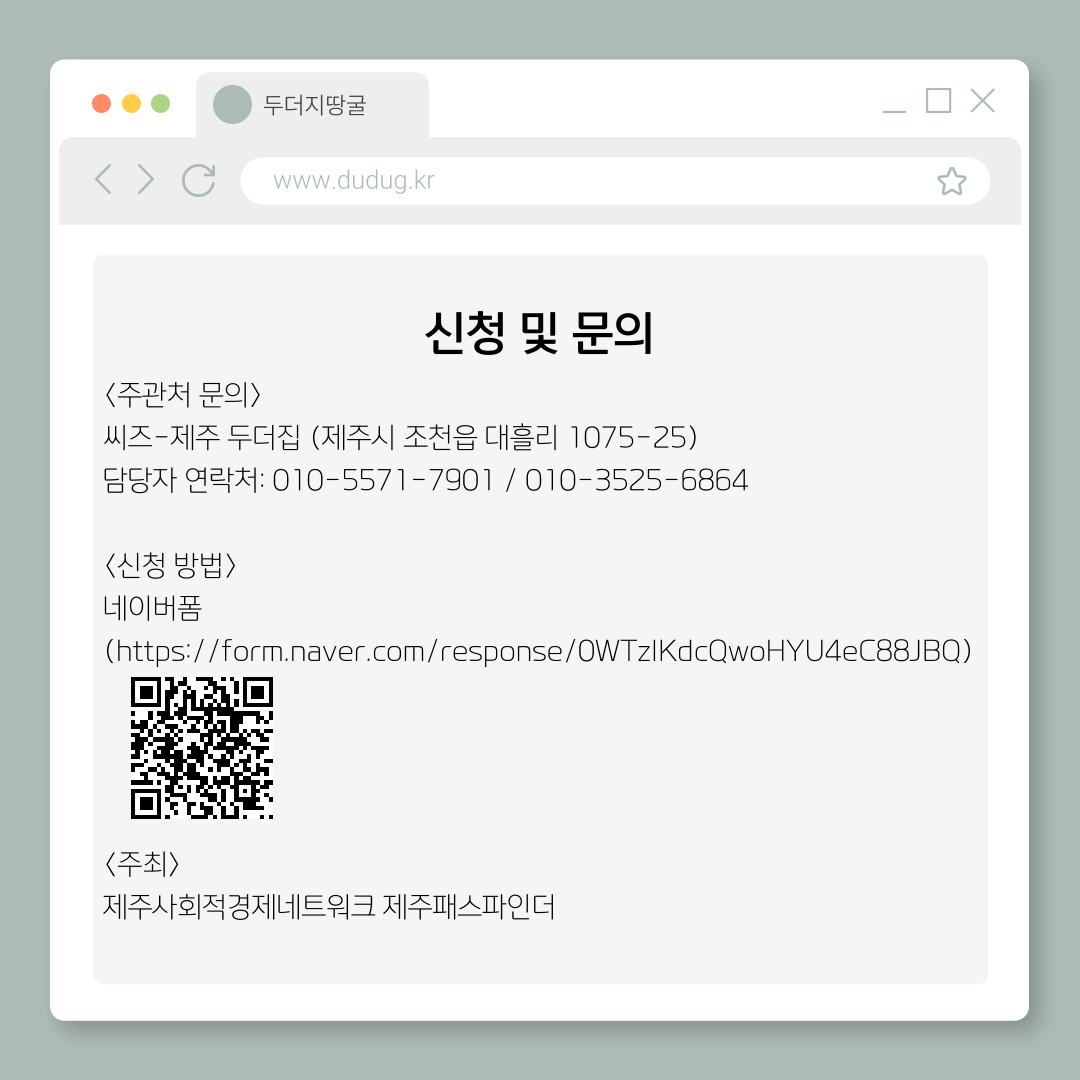 제주두더집 (조천읍 대흘리) 와 제주패스파인더 (제주시 서광로 192, 3층/ 한국병원 맞은편) 공간에서