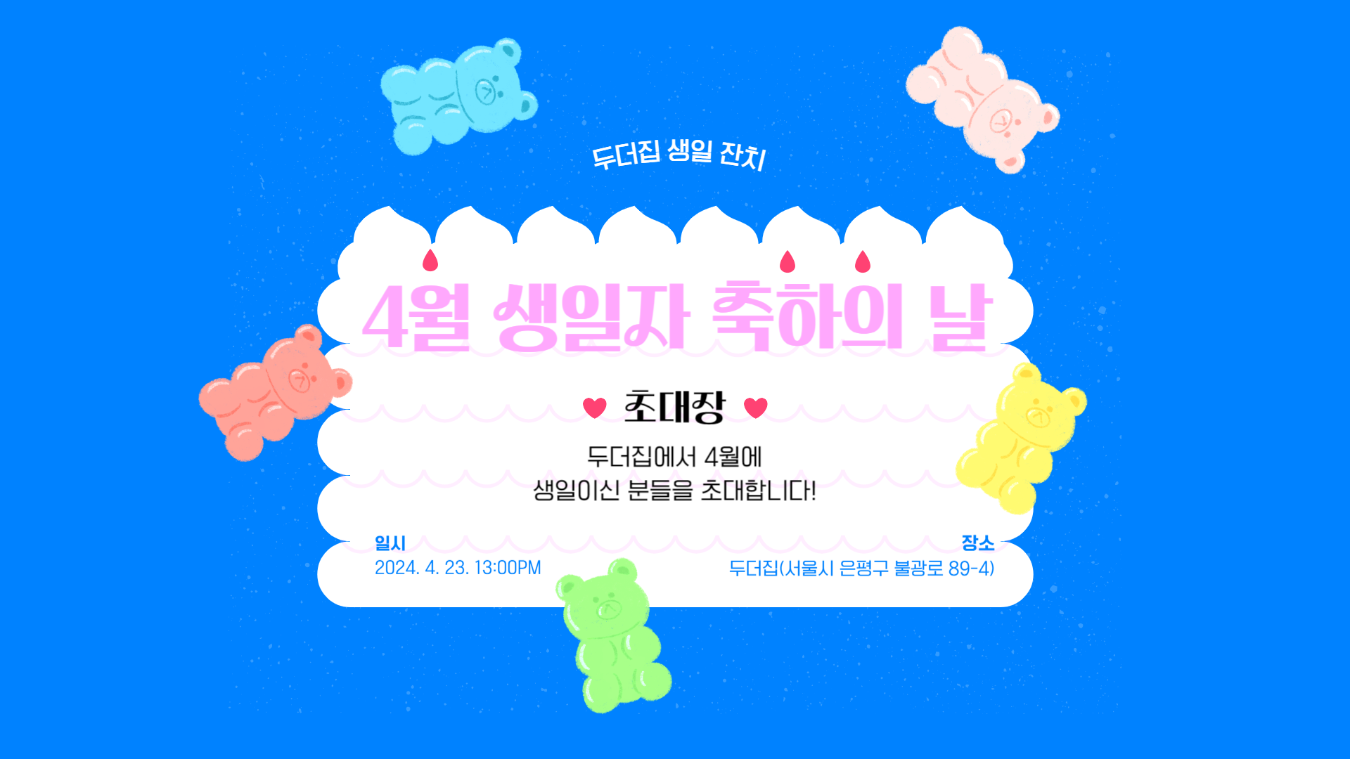 4월에 생일을 맞이하신 분과 축하해주실 분들은 내일 오셔서 맛있는 집밥 같이 먹어요~